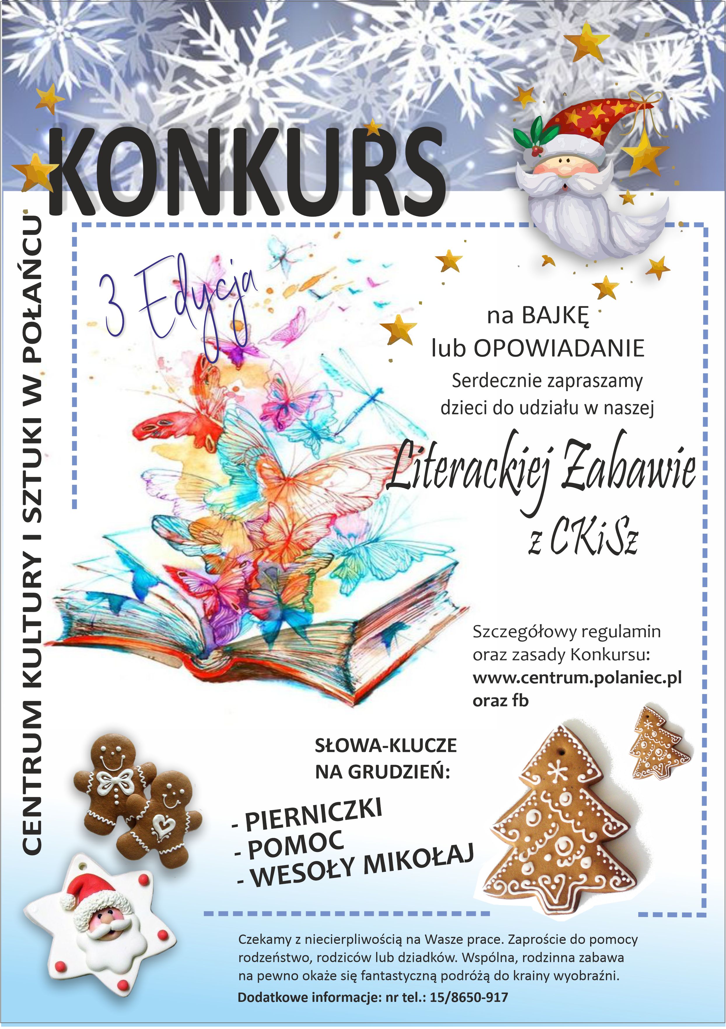 Zapraszamy do udziału w 3 Edycji Konkursu na Bajkę i Opowiadanie w których zawarte będą słowa; pierniczki, pomoc, wesoły mikołaj.