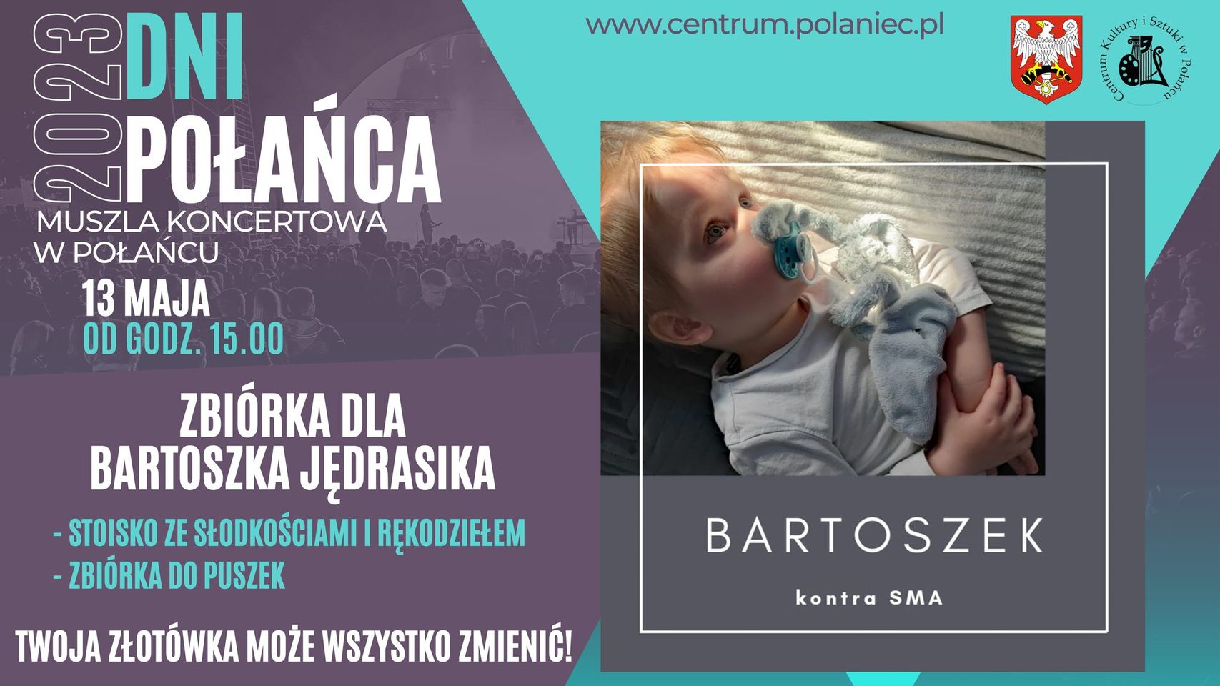 Kierując się słowami Helen Keller "Jestem tylko jedna i aż jedna, nie mogę zrobić wszystkiego, ale coś mogę zrobić" - Wszyscy możemy pomóc Bartoszek kontra SMA - licytacje Twoja złotówka ma wielką siłę i może wszystko zmienić. Podczas Dni Połańca odwiedźcie stoisko ze słodkościami i nie omijajcie wolontariuszy z puszkami.