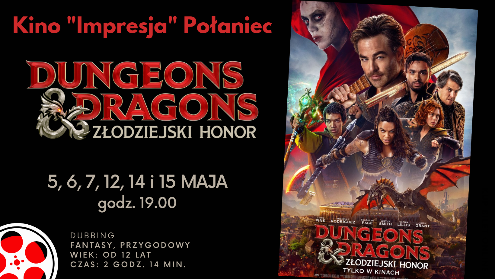 "DUNGEONS & DRAGONS: ZŁODZIEJSKI HONOR" w Kinie "Impresja" Połaniec: 5, 6, 7, 12, 14 i 15 maja (piątek, sobota, niedziela i piątek, niedziela oraz poniedziałek) godz. 19.00