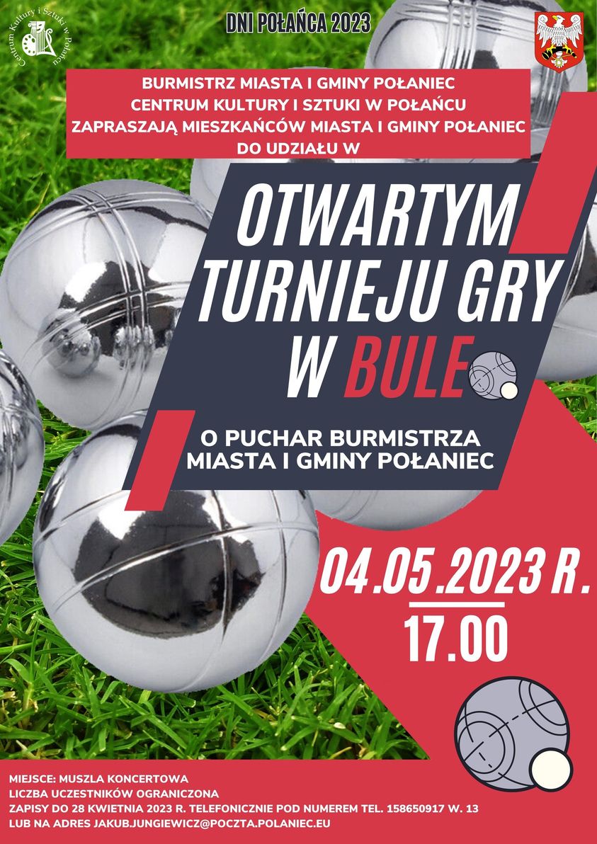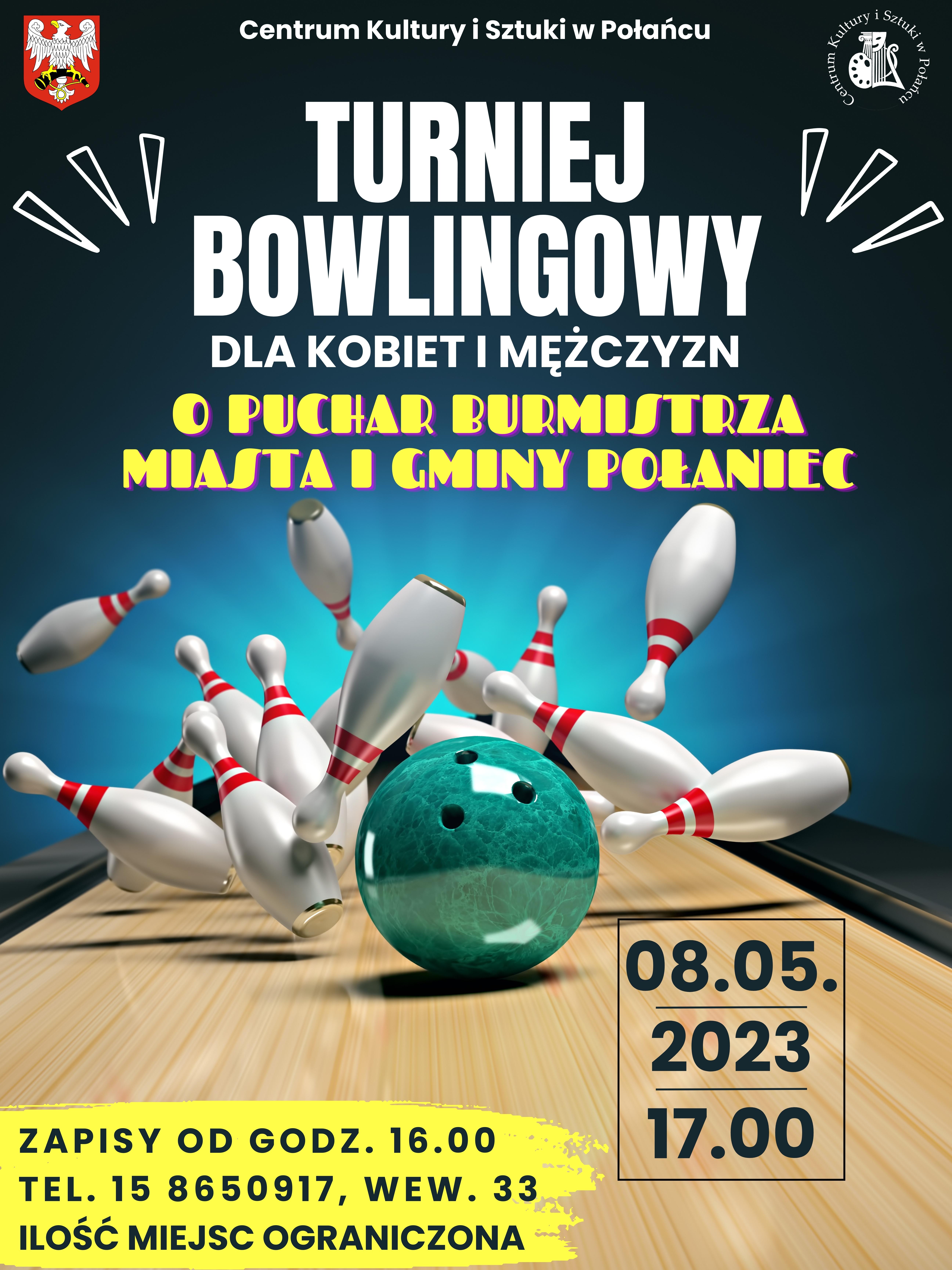 W ramach Dni Połańca zapraszamy na turniej bowlingowy dla kobiet i mężczyzn o puchar Burmistrza Miasta i Gminy Połaniec. Dla uczestników przewidziane są okolicznościowe medale, puchary i dyplomy.