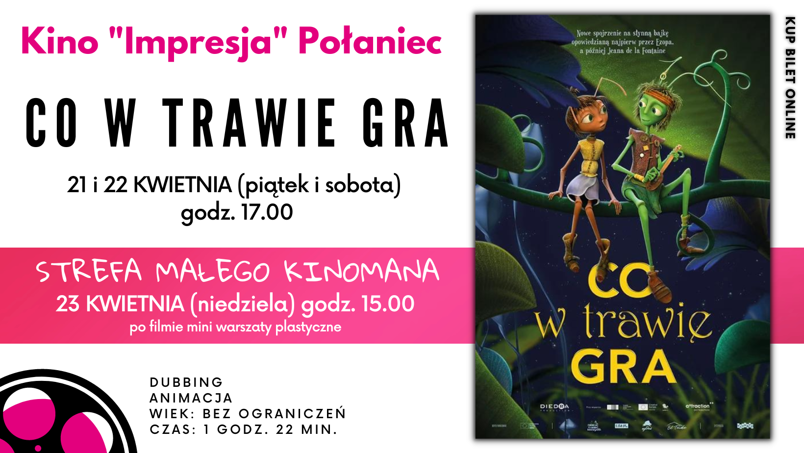 👇STREFA MAŁEGO KINOMANA: 📌 23 kwietnia (niedziela) ⏰godz. 15.00 👆 po filmie mini warsztaty plastyczne 🎨