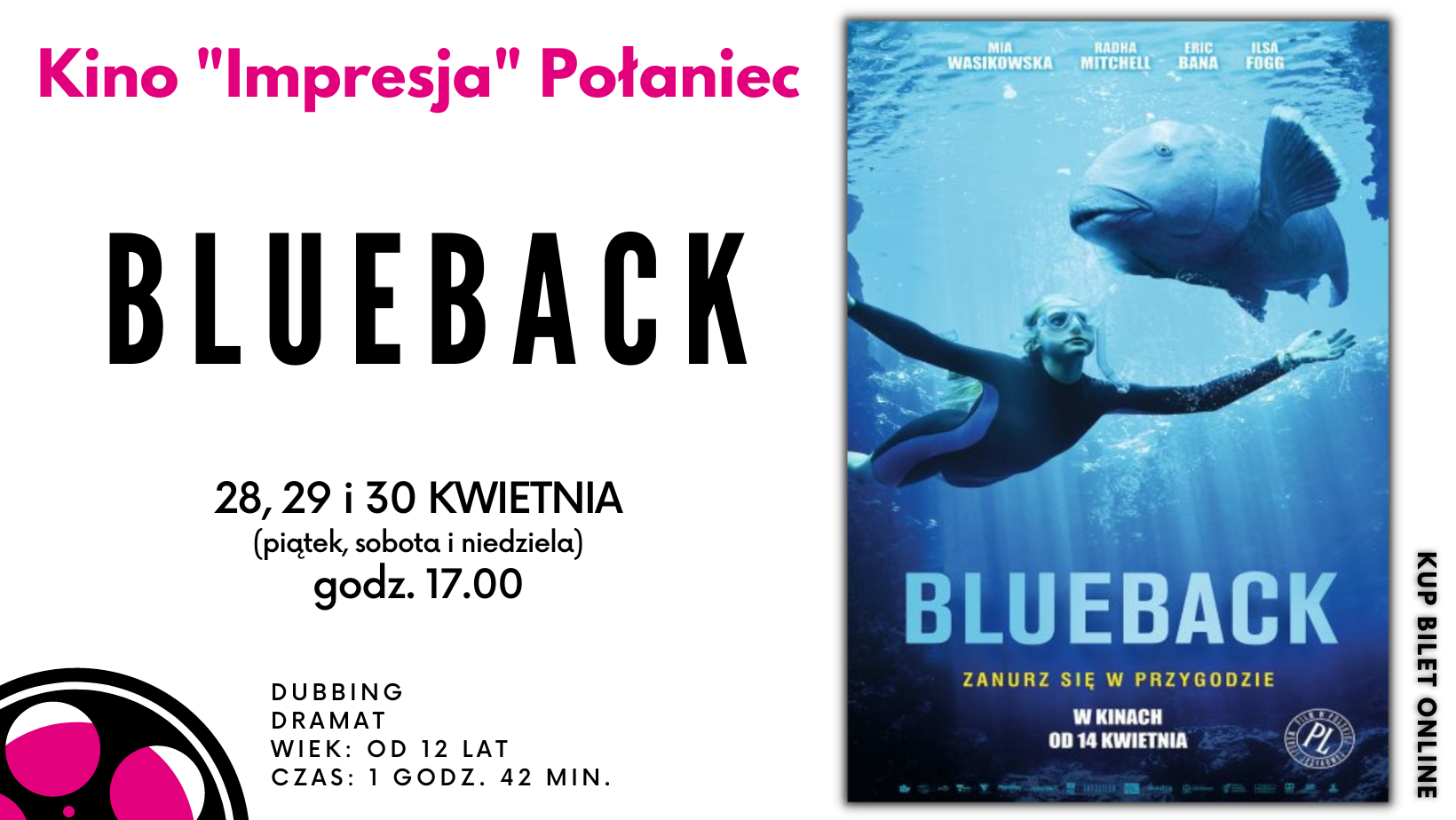 "BLUEBACK" w Kinie "Impresja" Połaniec: 28, 29 kwietnia (piątek, sobota) godz. 17:00 30 kwietnia (niedziela) o godz. 17:00 DUBBING DRAMAT WIEK: od 12 lat Czas projekcji: 1 godz. 42 min.