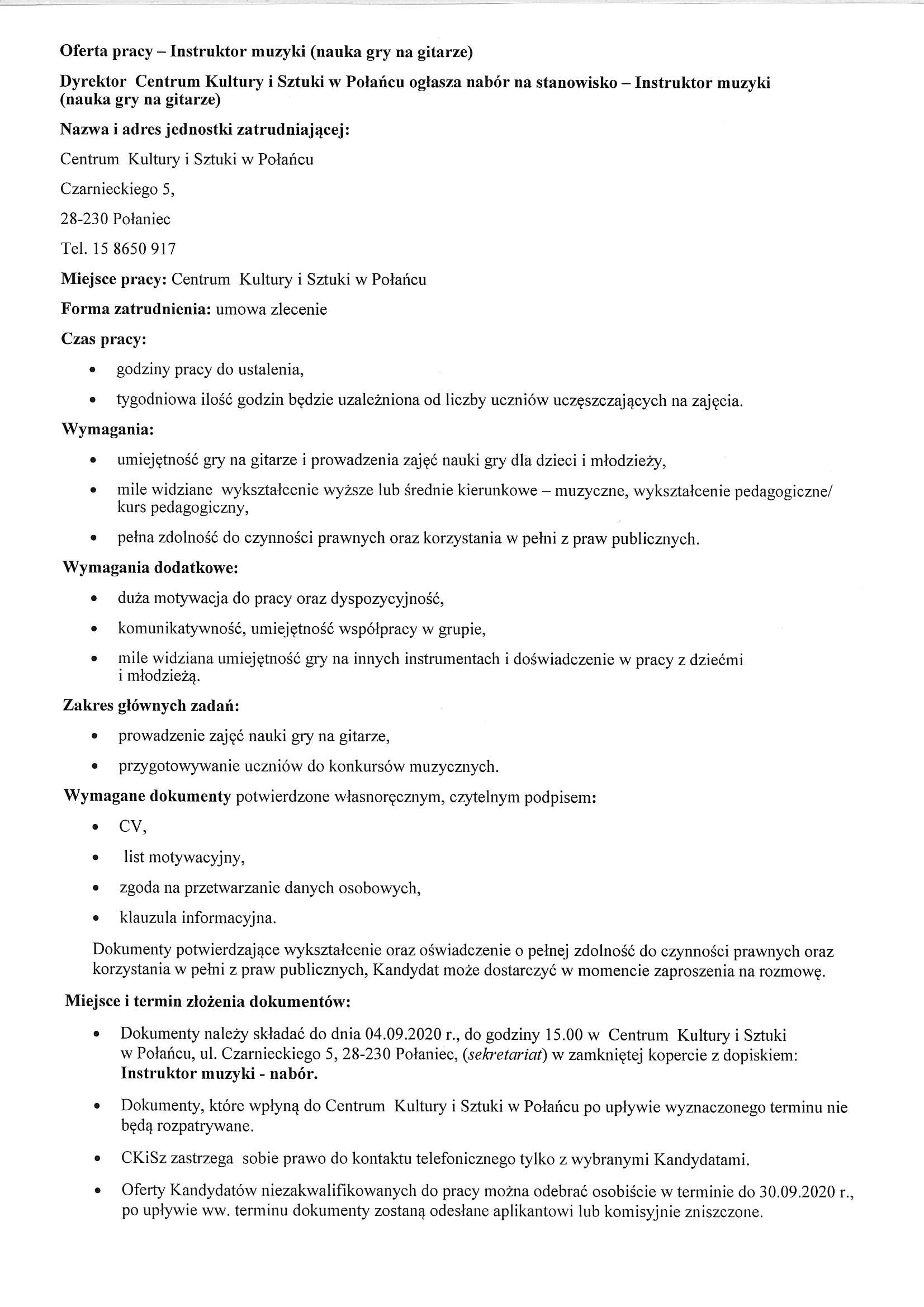 Oferta pracy dla Instruktora muzyki