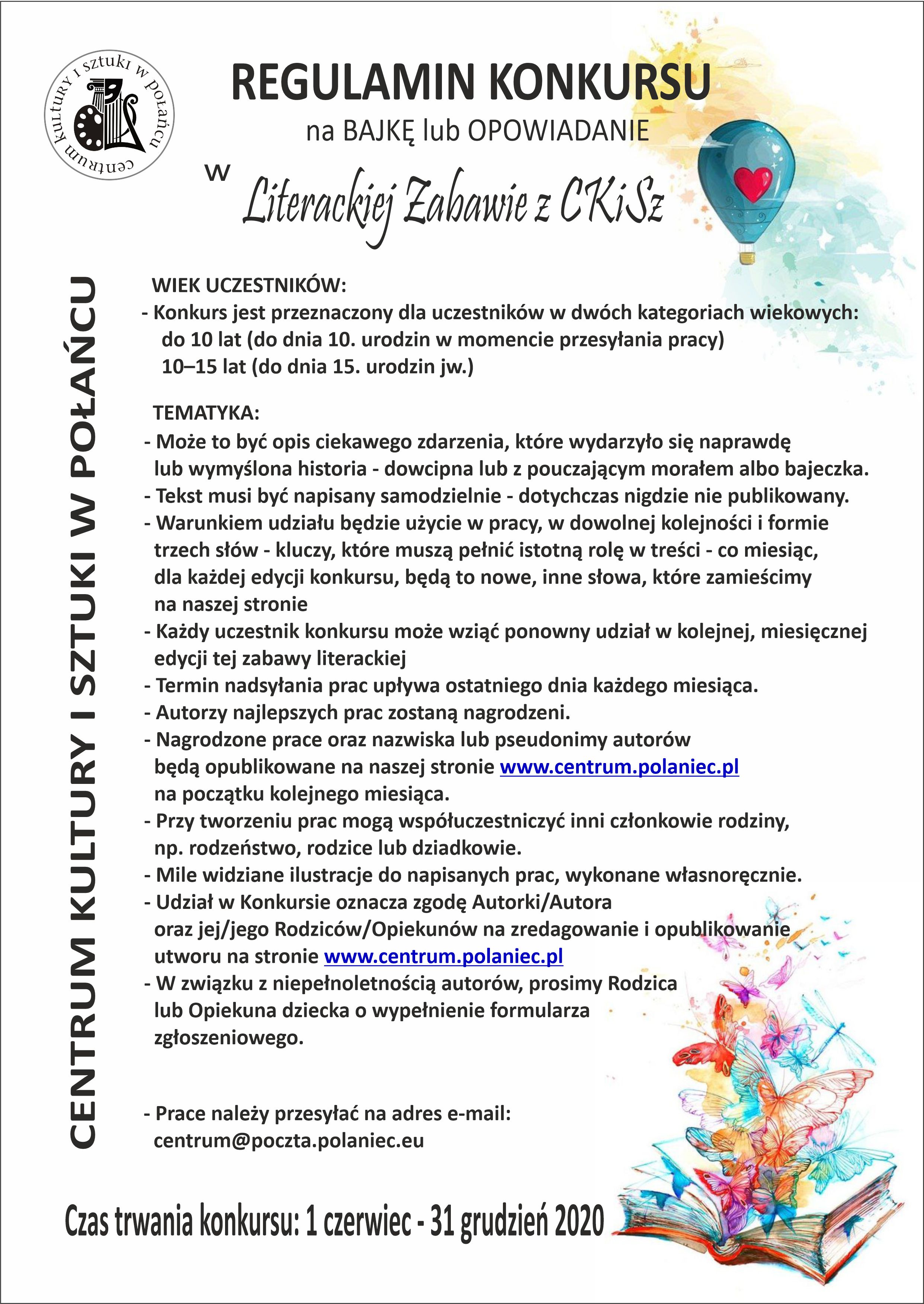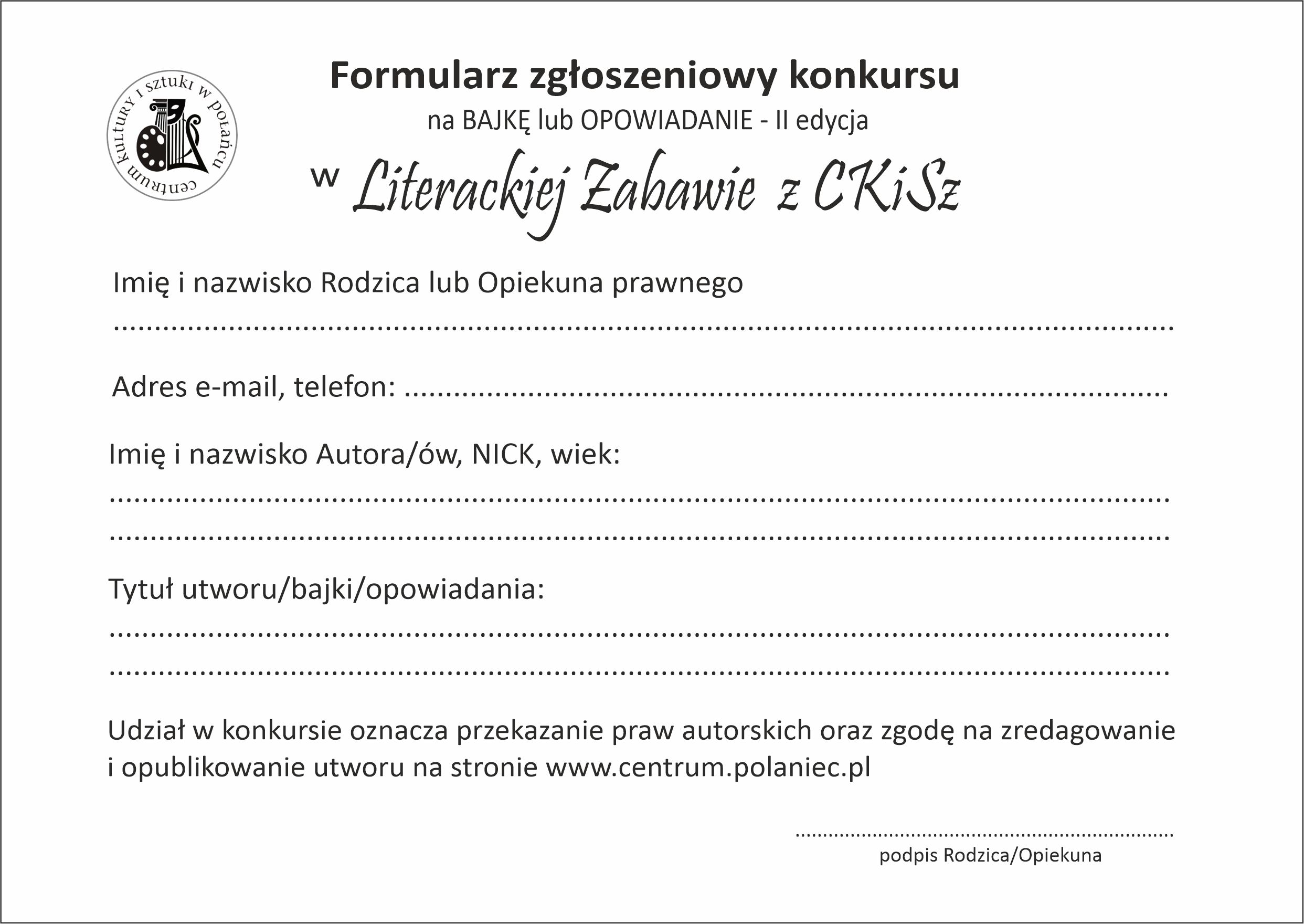 Zapraszamy do udziału w II Edycji Konkursu na Bajkę lub Opowiadanie w Literackiej Zabawie z CKiSz
