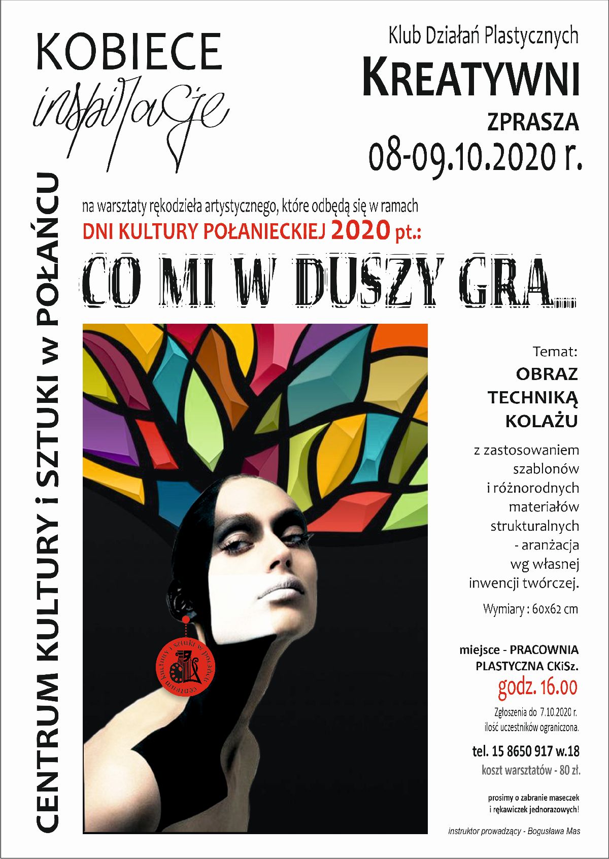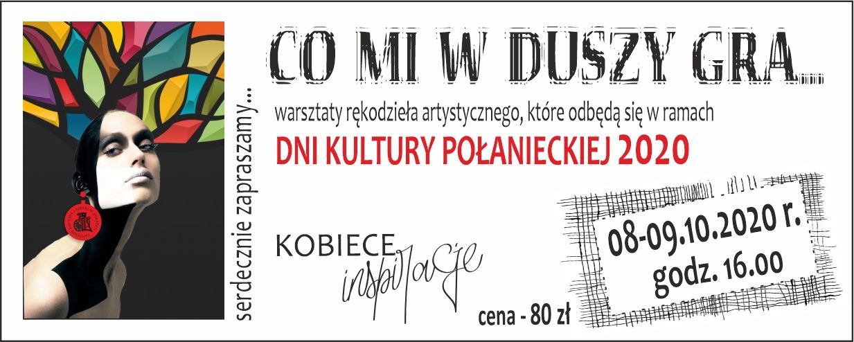 Warsztaty Klubu Działań Kreatywni "Co mi w duszy gra" odbędą się w ramach Dni kultury Połanieckiej 2020 w dniach 8-9 październik godz.16.00