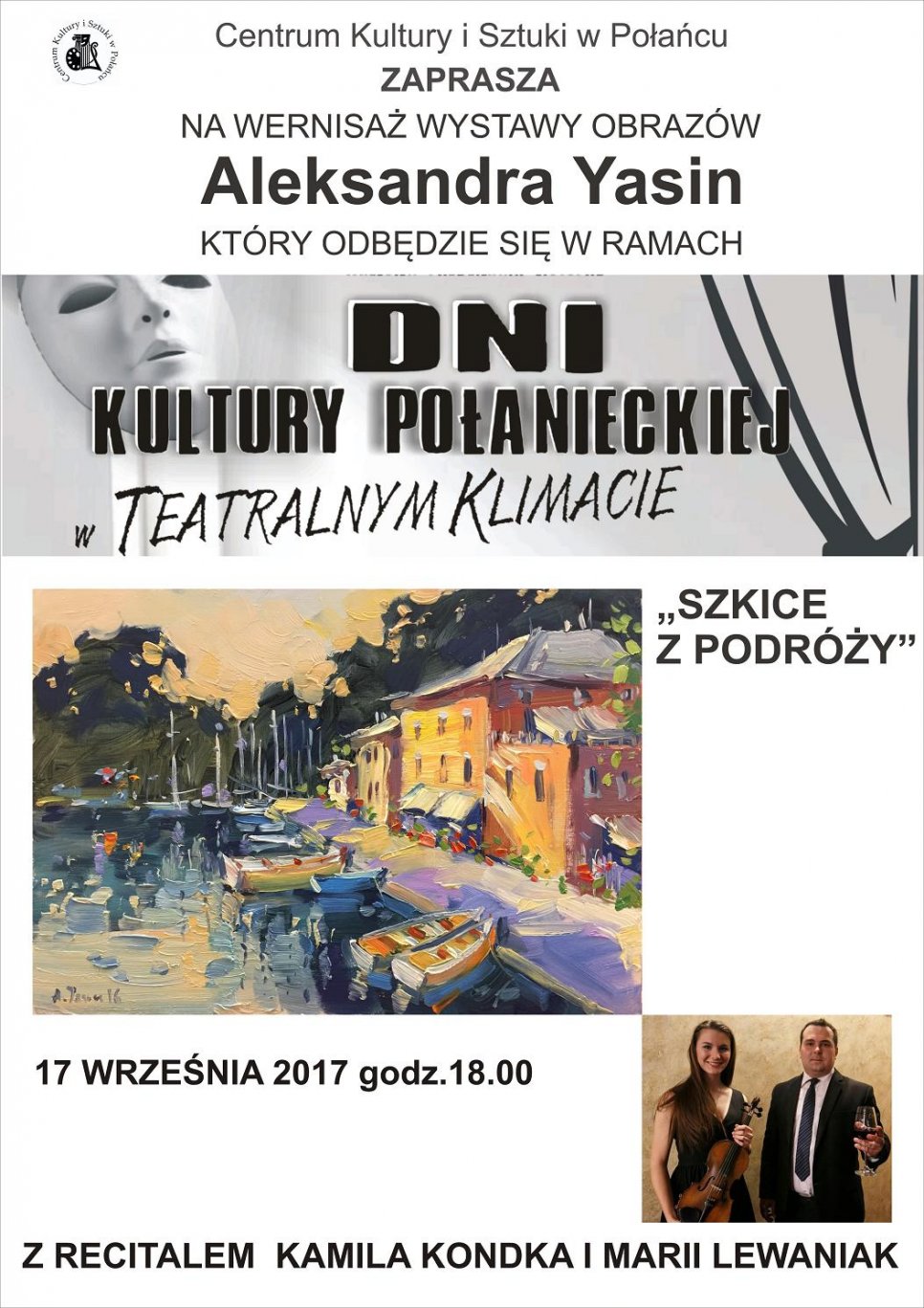 Zapraszamy na wernisaż malarstwa Aleksandra Jasinz recitalem Kamila Kondka i Marii Lewaniak17 września godz. 18.00