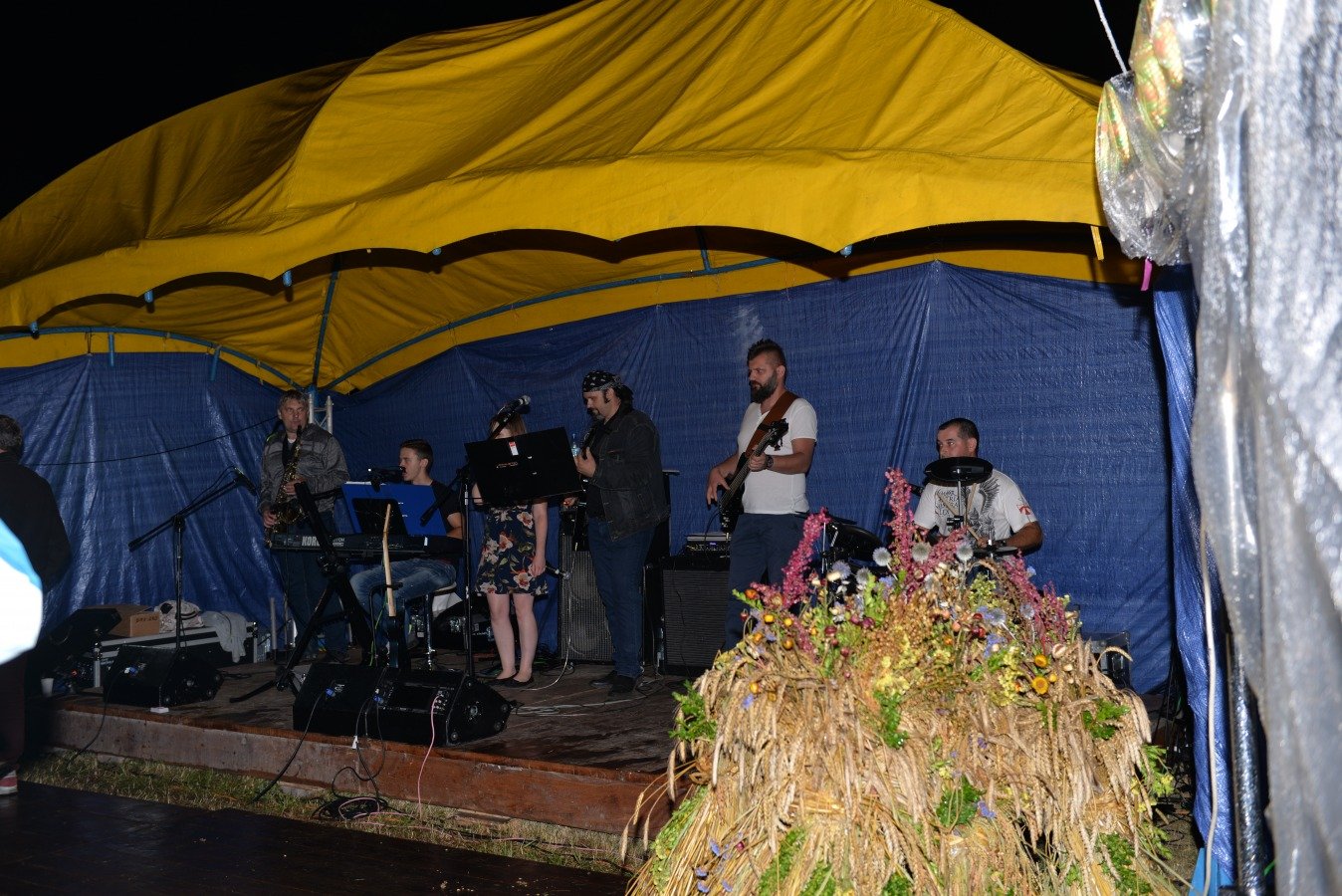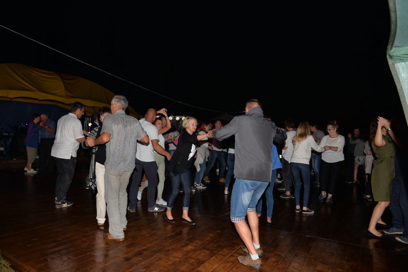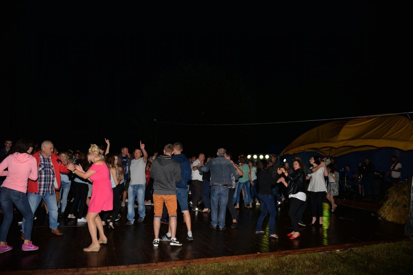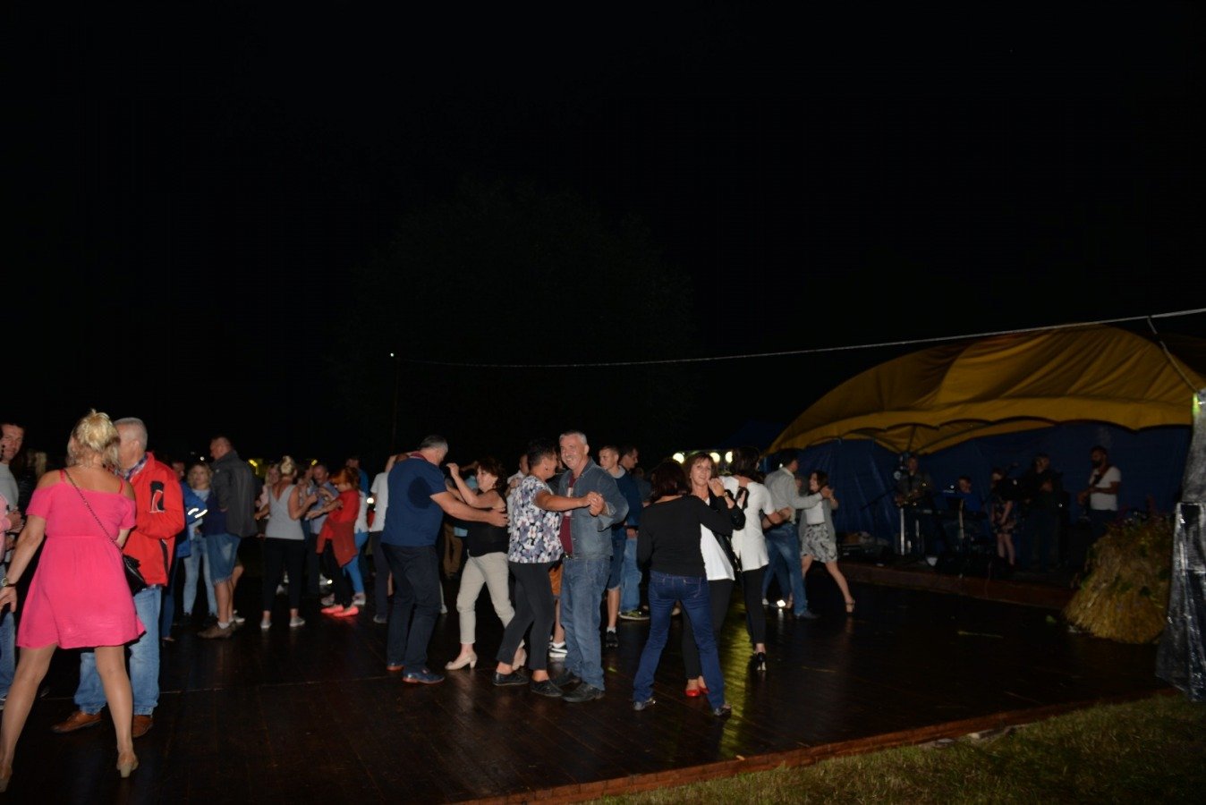 Z przytupem na ludową nutę zagrała Kapela „Niecka Połaniecka” z Centrum Kultury i Sztuki w Połańcu. Uczestnicy imprezy wtórowali kapeli śpiewając wspólnie wesołe, ludowe piosenki. Nie brakowało również chętnych do tańca. Pomimo padającego deszczu podłoga szybko zapełniła się tańczącymi parami. Punktem kulminacyjnym występów grupy Radius, Wajpak i Sidus z Centrum Kultury i Sztuki w Połańcu był program „Raz na ludowo” łączący niesamowitą energię trzech zespołów w folkowym klimacie. Przy takiej wybuchowej mieszance trudno było ustać w miejscu. Muzyczna energia udzieliła się uczestnikom, którzy szybko znaleźli się na parkiecie, bawiąc się wspólnie z dziewczynami. Zabawę taneczną poprowadził młody, dobrze zapowiadający się zespół muzyczny - Univers. Na scenie królowały disco polowe przeboje i stare taneczne hity, a pozytywna energia i dobra zabawa towarzyszyła wszystkim do samego końca.....