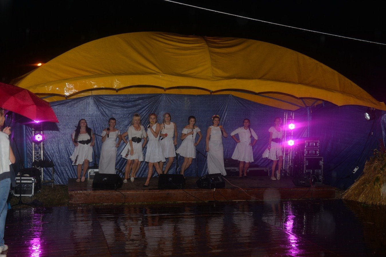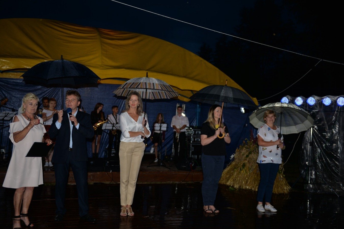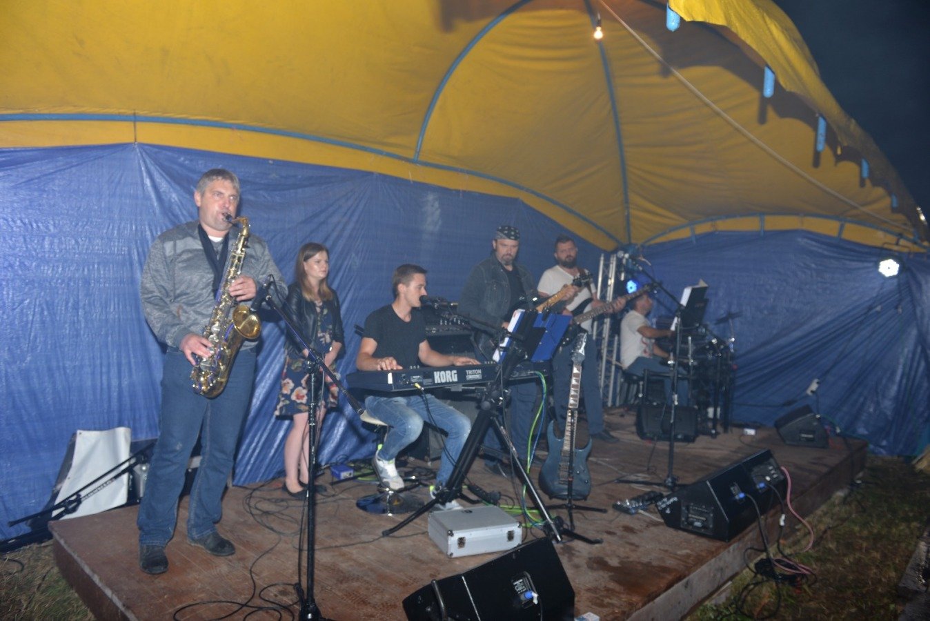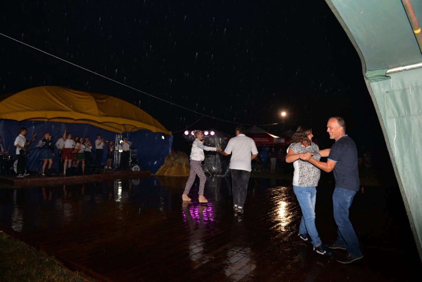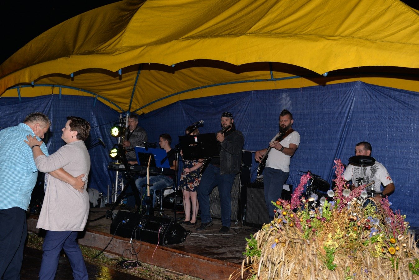 Z przytupem na ludową nutę zagrała Kapela „Niecka Połaniecka” z Centrum Kultury i Sztuki w Połańcu. Uczestnicy imprezy wtórowali kapeli śpiewając wspólnie wesołe, ludowe piosenki. Nie brakowało również chętnych do tańca. Pomimo padającego deszczu podłoga szybko zapełniła się tańczącymi parami. Punktem kulminacyjnym występów grupy Radius, Wajpak i Sidus z Centrum Kultury i Sztuki w Połańcu był program „Raz na ludowo” łączący niesamowitą energię trzech zespołów w folkowym klimacie. Przy takiej wybuchowej mieszance trudno było ustać w miejscu. Muzyczna energia udzieliła się uczestnikom, którzy szybko znaleźli się na parkiecie, bawiąc się wspólnie z dziewczynami. Zabawę taneczną poprowadził młody, dobrze zapowiadający się zespół muzyczny - Univers. Na scenie królowały disco polowe przeboje i stare taneczne hity, a pozytywna energia i dobra zabawa towarzyszyła wszystkim do samego końca.....