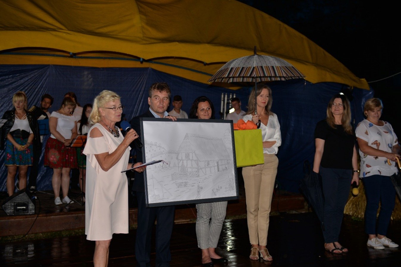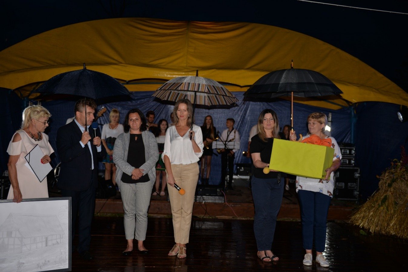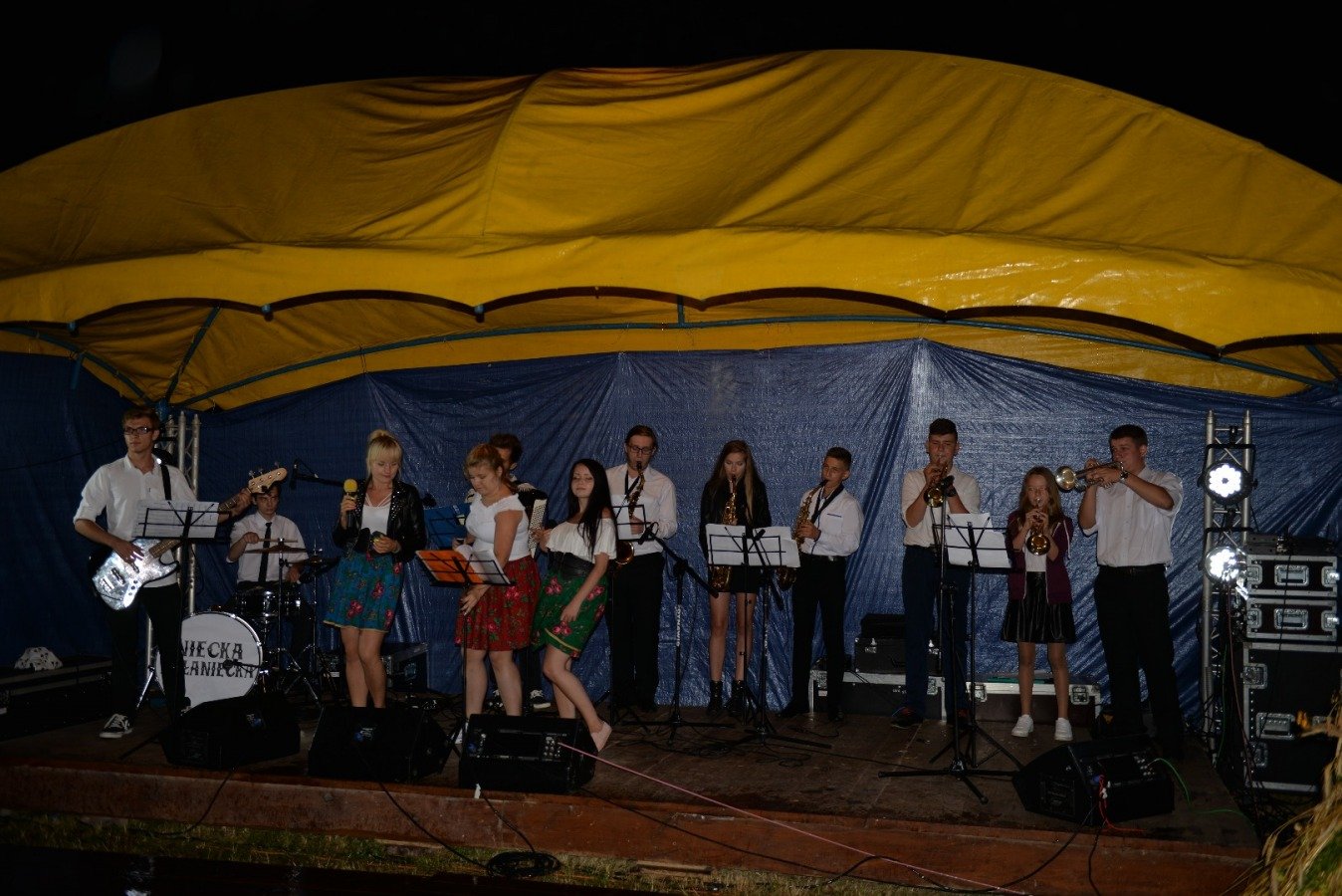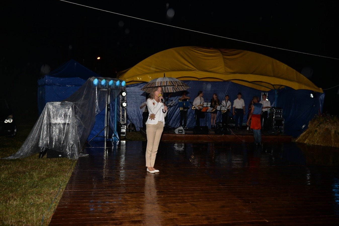 Z przytupem na ludową nutę zagrała Kapela „Niecka Połaniecka” z Centrum Kultury i Sztuki w Połańcu. Uczestnicy imprezy wtórowali kapeli śpiewając wspólnie wesołe, ludowe piosenki. Nie brakowało również chętnych do tańca. Pomimo padającego deszczu podłoga szybko zapełniła się tańczącymi parami. Punktem kulminacyjnym występów grupy Radius, Wajpak i Sidus z Centrum Kultury i Sztuki w Połańcu był program „Raz na ludowo” łączący niesamowitą energię trzech zespołów w folkowym klimacie. Przy takiej wybuchowej mieszance trudno było ustać w miejscu. Muzyczna energia udzieliła się uczestnikom, którzy szybko znaleźli się na parkiecie, bawiąc się wspólnie z dziewczynami. Zabawę taneczną poprowadził młody, dobrze zapowiadający się zespół muzyczny - Univers. Na scenie królowały disco polowe przeboje i stare taneczne hity, a pozytywna energia i dobra zabawa towarzyszyła wszystkim do samego końca.....