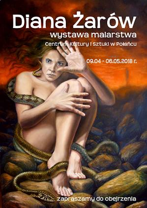 Od 9 kwietnia zapraszamy do obejrzenia wystawy malarstwa Diany Żarów w Centrum Kultury i Sztuki w Połańcu. Artystka, którą inspiruje człowiek, przyroda i tajemnice wszechświata już po raz drugi prezentuje swoje prace w Połańcu. Na płótnach można zobaczyć ulotne chwile stanu duszy uchwycone pędzlem artystki i wszystko to co kryje się na skraju ludzkiej podświadomości ....Zapraszamy do świata realizmu magicznego Diany Żarów.