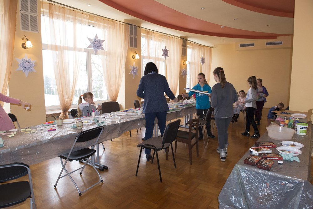 Zespół Placówek Oświatowych w Ruszczy postawił na gry, zabawy rekreacyjne i językowe. Szkoła rozbrzmiewała śmiechem i sportowym dopingiem, a uczniowie chętnie korzystali z zajęć. W Zespole Szkół w Połańcu sprawnie działała siłownia i sala fitness. Młodzież drużynowo rozgrywała mecze piłki: siatkowej, nożnej i koszykowej na małej i dużej sali gimnastycznej. Podobnie było w oddziale gimnazjalnym Publicznej Szkoły Podstawowej. Poza rozgrywkami sportowymi odbywały się tu zajęcia matematyczne, fizyczne, historyczne, językowe, biologiczne, techniczne, a wszystko jak zawsze spontanicznie i na wesoło. Śmiech i dobra zabawa towarzyszyła literacko – artystycznym spotkaniom w Miejsko - Gminnej Bibliotece w Połańcu i filii w Ruszczy. Dzieci uczestniczyły w wielu atrakcyjnych zajęciach i jak same mówiły dobrze się bawiły. Każde spotkanie w otoczeniu książek przynosiło kolejne niespodzianki i odkrywało przed uczestnikami świat baśni i legend czytelniczych i wirtualnych. Dodatkowa oferta zajęć komputerowych i plastycznych oraz możliwość korzystania z różnego rodzaju gier trafiła w gusta młodych czytelników i zachęciła do odwiedzania biblioteki. Centrum Kultury i Sztuki w Połańcu również kusiło ciekawą ofertą feryjnych zajęć i warsztatów. Jak co roku dzieci z zaangażowaniem uczestniczyły w warsztatach plastycznych tworząc trójwymiarowe obrazy z ptakiami cudakami, kolaże i zaskakujące formą jednorożce. Wszystkie prace można już dziś podziwiać na zimowej wystawie. Podczas ferii kręgielnia przeżywała prawdziwe oblężenie. Radość, zabawa i pozytywna rywalizacja towarzyszyła uczestnikom rozgrywek bowlingowych. Na brak najmłodszych kinomanów nie narzekało Kino „Impresja”. Filmowe propozycje Kina Feryjnego spotkały się z dużym zainteresowaniem nie tylko wśród dzieci i młodzieży z gminy Połaniec, ale co bardzo cieszy również z okolicznych gmin. Przeciwwagą dla filmu był teatr i interaktywny spektakl „Trąba Słonia Salomona”. Przedszkolaki chętnie wzięły udział w zabawach z żółtym słoniem, śmiejąc się przy tym radośnie. W feryjnej ofercie nie zabrakło propozycji dla fanów piłki nożnej oraz najróżniejszych gier strategicznych, komputerowych i rozwijających logiczne myślenie szachów. Według uczestników spotkanie z grami w takiej formie trzeba koniecznie powtórzyć. Zabawy animacyjne na sali widowiskowej i animatorzy przebrani w kolorowe stroje zachęcały maluchy do wspólnej, żywiołowej zabawy. Były konkursy, gry i sportowe konkurencje. Super pomysłem okazały się niespodzianki dla każdego uczestnika przygotowane przez Miasto i Gminę Połaniec. Najróżniejsze zabawki jak zawsze z uśmiechem rozdawała Joanna Juszczyńska – Dyrektor CKiSz.