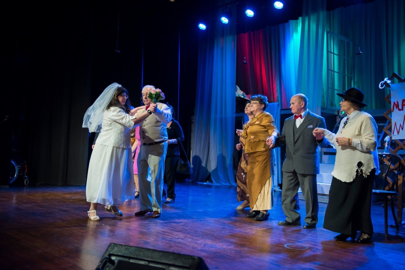 Uczestnicy długo przygotowywali się do występu pod okiem instruktorów terapii zajęciowej w ramach atreterapii. Teatroterapia poprzez sztukę pozwala odreagować negatywne stany emocjonalne, aktywizować drzemiące w podopiecznym zdolności, podkreśla jego wyjątkowość i niepowtarzalność. Publiczność nagrodziła występ podopiecznych ŚDS gromkimi brawami oraz uśmiechem. Kolejnym punktem spotkania było wspólne karaoke z piosenkami biesiadnymi. Cała sala chętnie włączyła się do śpiewu. Tego wieczoru nie zabrakło artystycznego akcentu Centrum Kultury i Sztuki. Był to fragment niezwykłego musicalu „Taniec Upiorów” oparty na filmie Romana Polańskiego z 1967 roku "Nieustraszeni pogromcy wampirów", wyreżyserowany i przedstawiony przez młodzież i instruktorów z Centrum Kultury i Sztuki w Połańcu. Młodzi wykonawcy zabrali widzów w wyjątkową, muzyczną podróż do odległych czasów, do świata pełnego dziwnych zjawisk i niesłabnącego życiowego humoru. To była duża dawka uśmiechu w taneczno - muzycznej formie. Na zakończenie zaproszeni goście wraz z organizatorami spotkania udali się do sali kawiarnianej, gdzie czekał na wszystkich poczęstunek. Było to niezwykle miłe spotkanie i na pewno każdemu na długo zostanie w pamięci.