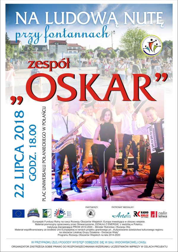 Zapraszamy na kolejne muzyczne spotkanie na Placu Uniwersału Połanieckiego. W niedzielę 22 lipca o godz. 18.00 zagra ZESPÓŁ OSKAR.