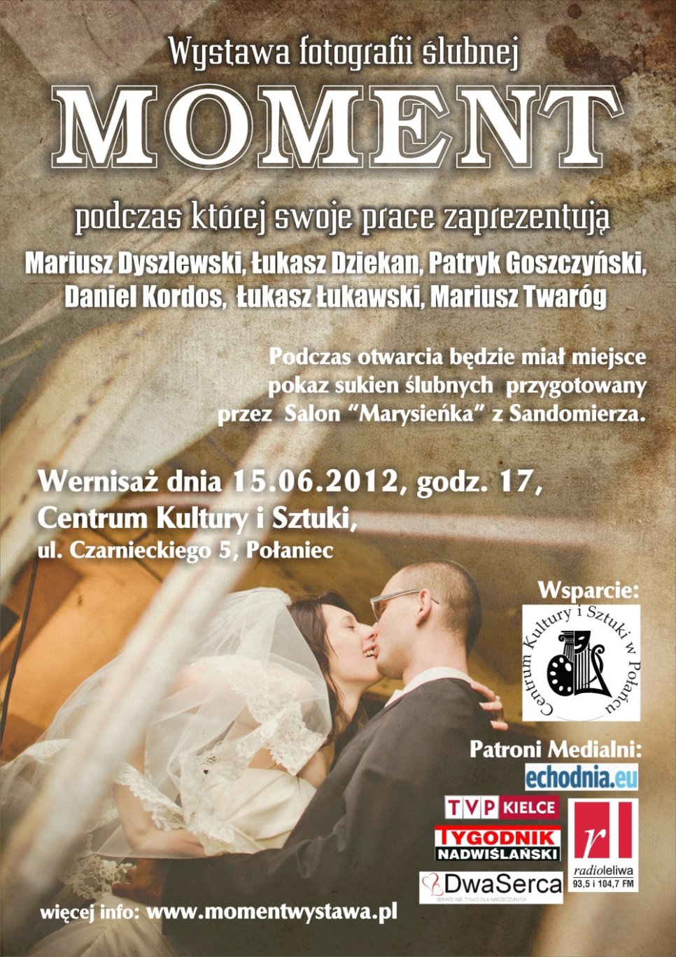 W dniu 15 czerwca 2012 w Centrum Kultury i Sztuki w Połańcu (ul. Czarnieckiego 5) będzie miał miejsce wernisaż wystawy cyklicznej pt. „Moment”. Podczas niej 48 prac zaprezentuje 6 fotografów, na co dzień zawodowo związanych z fotografią ślubną.