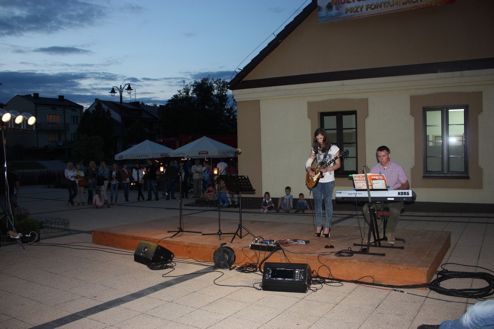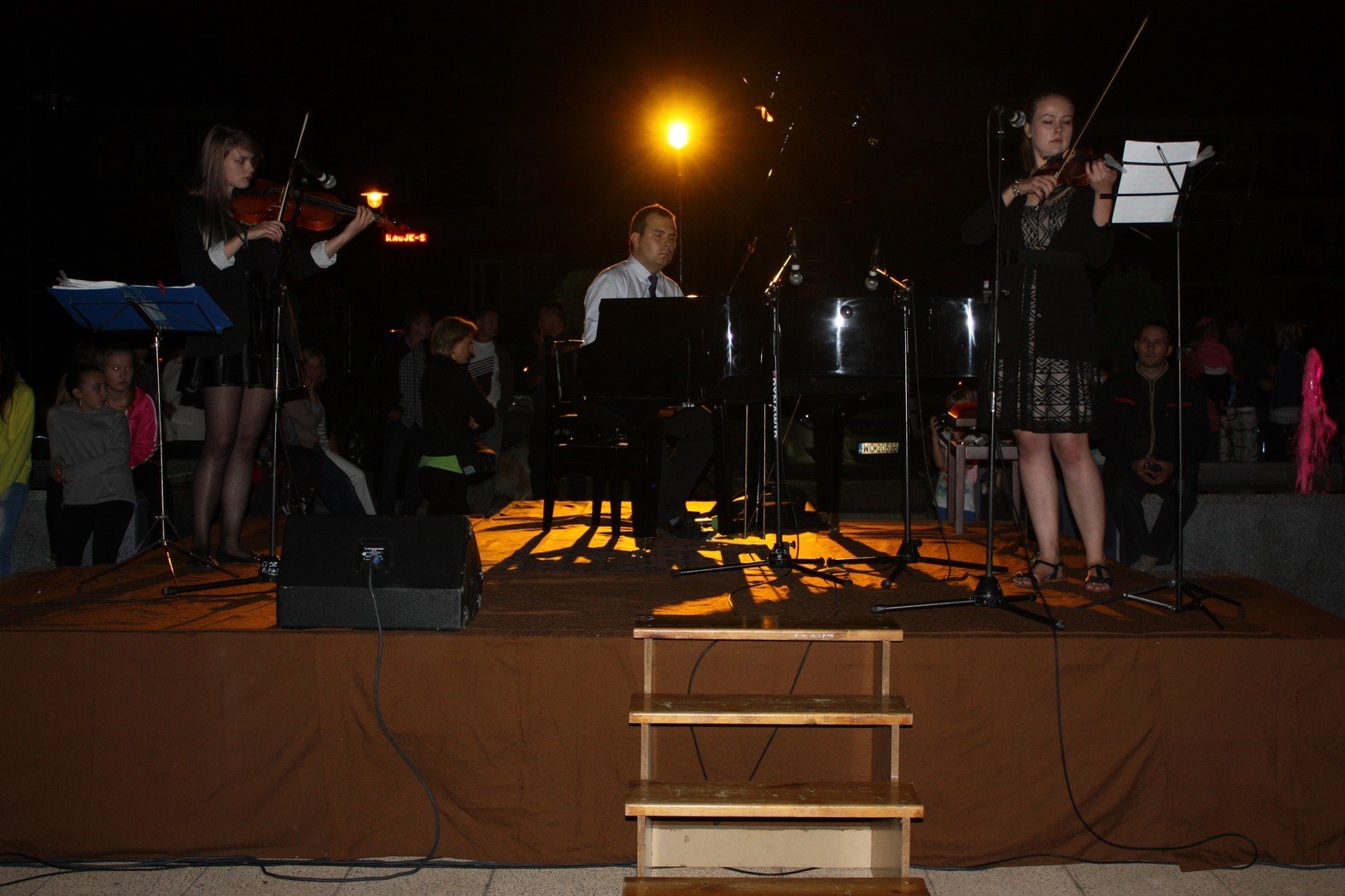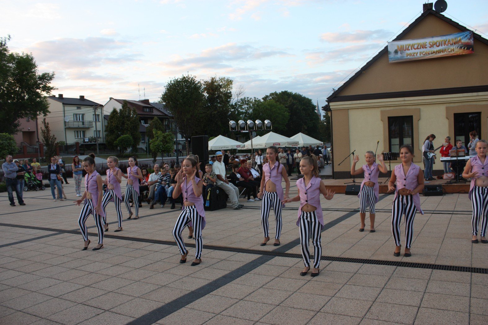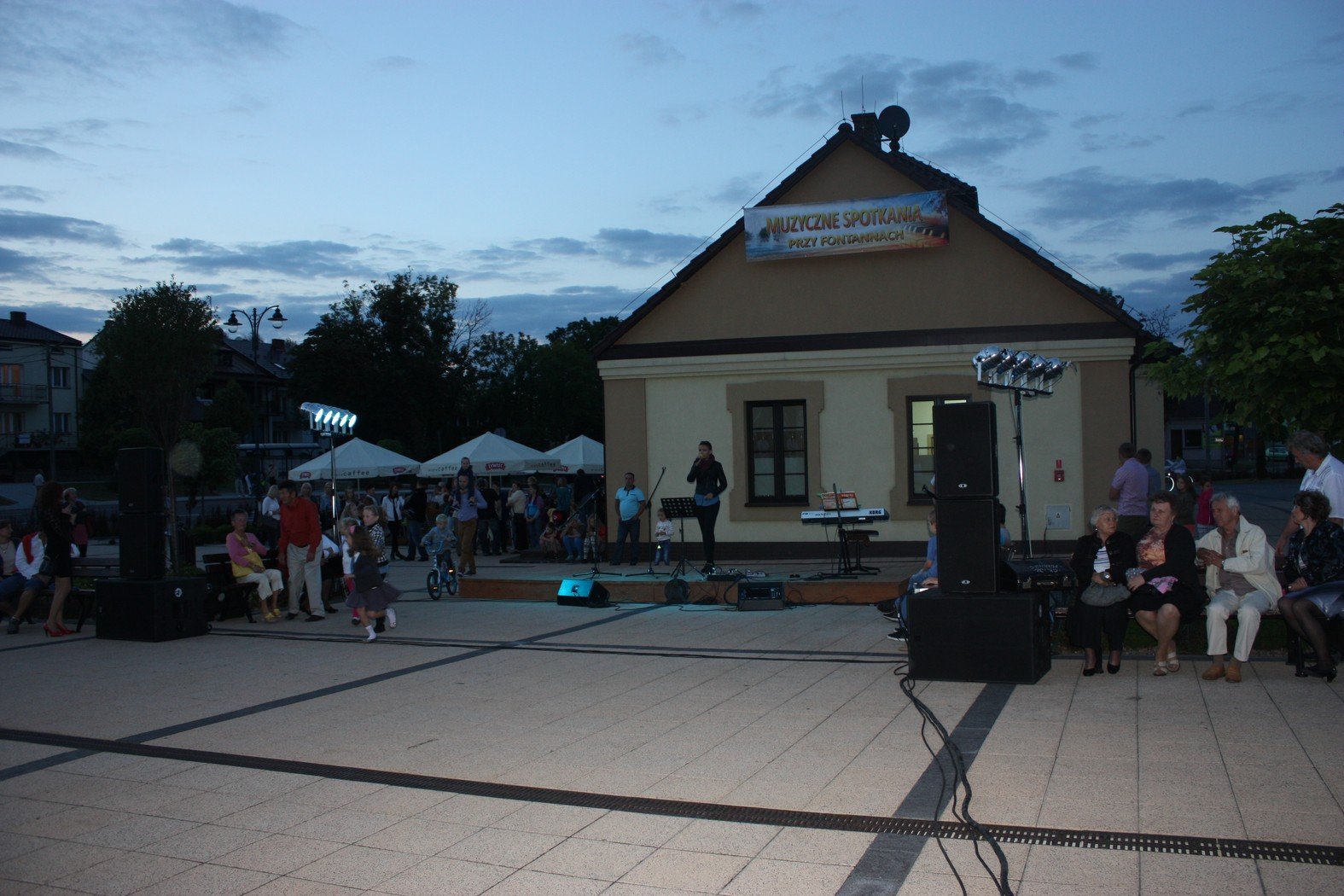 Bukiet muzycznych niespodzianek wręczyli mieszkańcom i gościom organizatorzy spotkań przy fontannach. Był taniec, muzyka i śpiew. Jak zawsze nie zabrakło pozytywnej energii młodzieży z Centrum Kultury i Sztuki. Połaniecki Rynek wirował w tańcu razem z zespołem Digress i Digress II. Rozbrzmiewał akordami gitary i keyboardu wraz z grupą instrumentalną Sami Swoi. Bawił wesołymi rytmami zespołu SIDUS i Szalonego Trio. W pięknym, muzycznym bukiecie znalazło się miejsce dla muzyki z dwóch przeciwstawnych krańców wrażliwości. Z jednej strony klasycznie, nastrojowo z drugiej nowocześnie z hip – hopowymi bitami. Połaniecki rynek i urokliwe spotkania przy fontannach połączyły elementy muzyczne w jedną spójną całość. Zarówno w świetle kolorowych fontann jak i na scenie przy budynku Punktu Informacji Turystycznej płynęła muzyka prosto z serca. Każdy ze słuchaczy znalazł coś dla siebie. Jednych urzekał delikatny, drżący „śpiew” skrzypiec Olgi Opalińskiej i Anny Paluch a innych mocne akordy fortepianu Kamila Kondka. Wieczór z muzyką klasyczną zrelaksował i odprężył. Nie obyło się bez spontanicznych niespodzianek. Znakomite wykonanie kultowej piosenki Dżemu przez Marszałka Województwa Świętokrzyskiego Piotra Żołądka spotkało się z sympatycznym odbiorem i zasłużonymi brawami. Pan Marszałek zachęcając do wspólnego śpiewania podkreślił wspaniałą atmosferę połanieckiego rynku i zaangażowanie w życie kulturalne mieszkańców.
