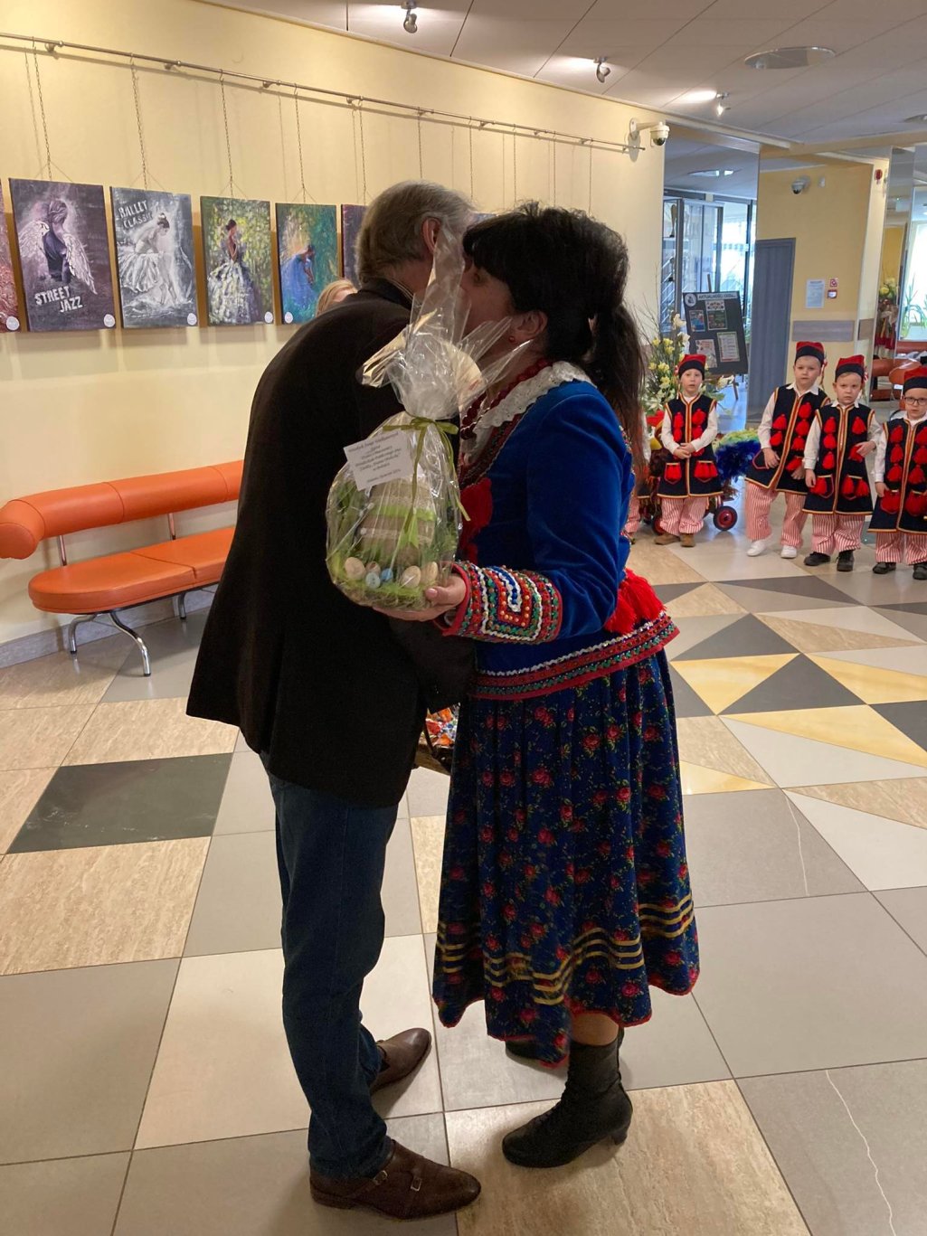 Jak co roku, tuż przed Wielkanocą odwiedziły Centrum Kultury i Sztuki przedszkolaki z tradycyjnym "Kogucikiem" i świątecznymi życzeniami. Z uśmiechem zaśpiewały i zatańczyły pięknie prezentując się w strojach ludowych. Ciepłe, z serca płynące życzenia były miłą niespodzianką dla wszystkich pracowników. Za tak piękny występ przedszkolaki otrzymały słodki upominek do koszyczka.